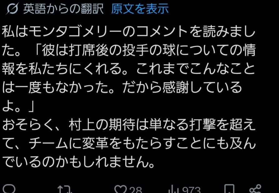 モンゴメリーお前こんな有益なことやってもらっといて村上がHR打った時拍手してなかったんかい