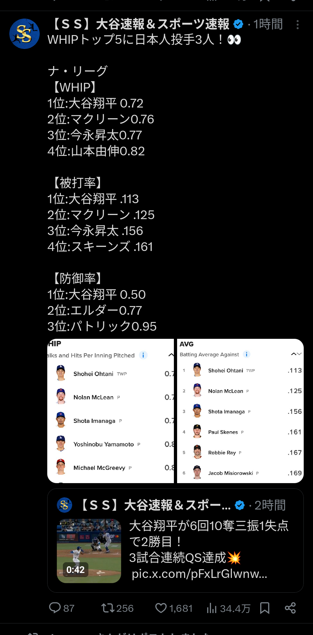 大谷翔平選手、ついに投球でも「世界の頂」が見えてきた!?2026年シーズンの最新成績がスレで公開され、その圧倒的な指標に野球ファンたちが大盛り上がりしています。防御率0点台も夢ではない「投谷さん」の無双ぶりに加え、今永昇太選手や山本由伸選手といった日本人右腕・左腕の活躍も凄まじいことになっています。一方で、「規定投球回(イニング)」の壁や、エグすぎる魔球を投げる新星マクリーンの存在など、気になる話題も満載!